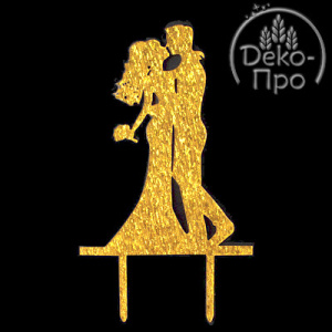 Топпер СВАДЕБНАЯ ПАРА, h14,5см, золотой