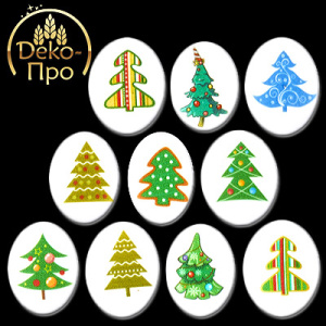 Сахарные фигурки Медальоны Елочки, 35х25мм, 1/63шт
